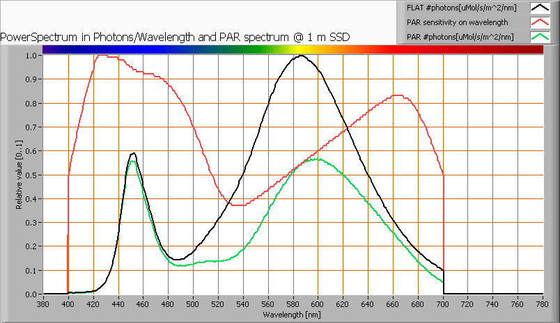 Als gekeken wordt naar het gedeelte van het spectrum van het licht van de lamp, dat bruikbaar is voor fotosynthese, dan komt dat neer op 63 % (geldig voor het golflengtegebied van 400-700 nm.