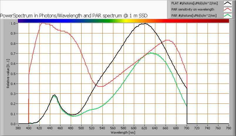Als gekeken wordt naar het gedeelte van het spectrum van het licht van de lamp, dat bruikbaar is voor fotosynthese, dan komt dat neer op 65 % (geldig voor het golflengtegebied van 400-700 nm.
