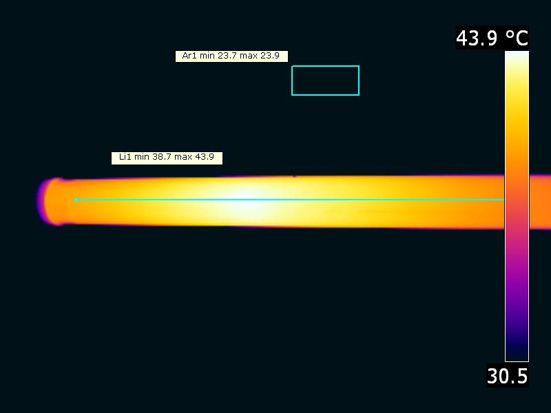 De lamp wordt maximaal ongeveer 20 graden warmer dan omgevingstemperatuur. Opwarmeffect: Gedurende de opwarming varieert de verlichtingssterkte niet significant (< 5 %). Gedurende de opwarming varieert het vermogen niet significant (< 5 %). Afhankelijkheid spanning: Er is geen (significante) afhankelijkheid van de verlichtingssterkte wanneer de voedingsspanning tussen de 200 – 250 V AC varieert. Aan het eind van het artikel een extra foto. |
