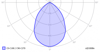 Het lichtdiagram geeft een bundel aan in het C0-C180 vlak en in het 90 graden loodrecht daarop staande C90-C270 vlak. Deze zijn gelijk vanwege de symmetrie over de 1e as (de verticale as).