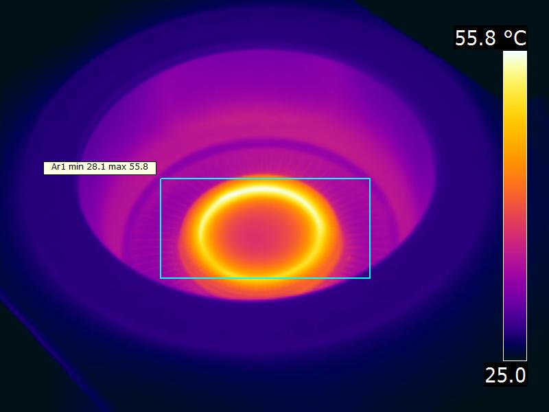 Algemene opmerkingen De omgevingstemperatuur gedurende de hele set van verlichtingsterktemetingen was 23.2 – 23.5 deg C.De lamp wordt maximaal ongeveer 32 graden warmer dan omgevingstemperatuur.Opwarmeffect: Gedurende de opwarming varieert de verlichtingssterkte niet significant (< 5 %).Gedurende de opwarming varieert het vermogen niet significant (< 5 %).
