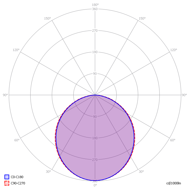 Het lichtdiagram geeft de bundel aan in het C0-C180 vlak (loodrecht op de lengterichting van de lamp) en de bundel in het C90-C270 vlak (in de lengterichting van het lichtgevende oppervlak, gelijk aan in de lengterichting van de lamp).