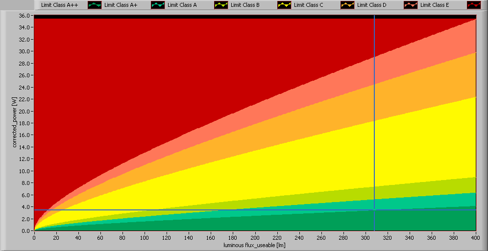 De prestatie van de lamp in het energie-performance vlak.