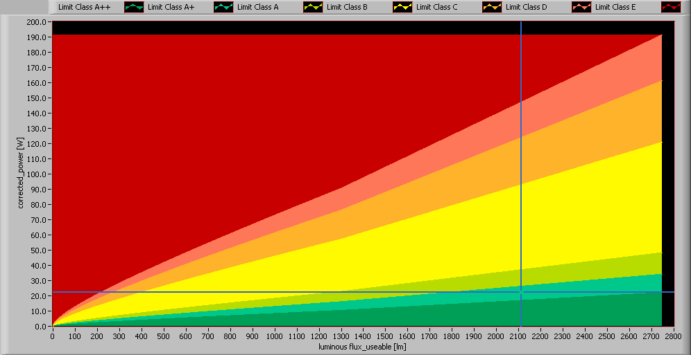 Van belang voor de energieclassificatie zijn gecorrigeerd vermogen en nuttige lichtstroom.