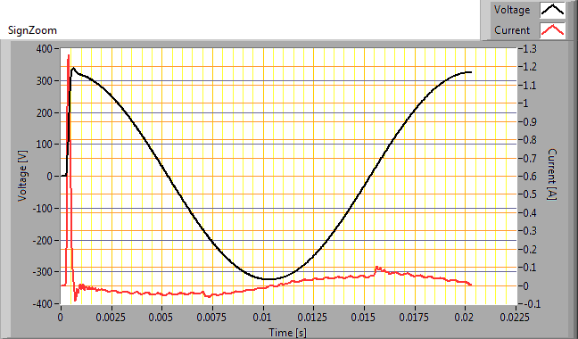 | Max inschakelstroom | 1.263 A | Deze stroom is gevonden bij een starthoek van de spanning van 90 graden. |