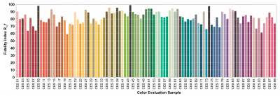 TM-30-15 Rf waardes voor 99 samples voor het licht van deze lamp. Wanneer deze de waarde 100 dicht nadert, betekent het dat de kleurweergave dichtbij die van de referentielamp zou zijn.
