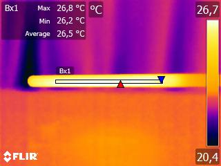 De lamp wordt maximaal ongeveer 2 graden warmer dan omgevingstemperatuur. Opwarmeffect: Gedurende de opwarming varieert de verlichtingssterkte gedurende 0 minuten en neemt dan 12 % af. Afhankelijkheid spanning: Er is geen (significante) afhankelijkheid van de verlichtingssterkte wanneer de voedingsspanning tussen de 10 – 14 V varieert. Aan het eind van het artikel een extra foto. |