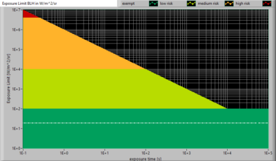 | alphaAVG [rad] | 0.100 | Gemiddelde (schijnbare) voorwerpshoek. Indien >= 0.011 rad dan wordt met radiantie Lb de blootstellingslimiet berekend. Anders met irradiantie Eb. |