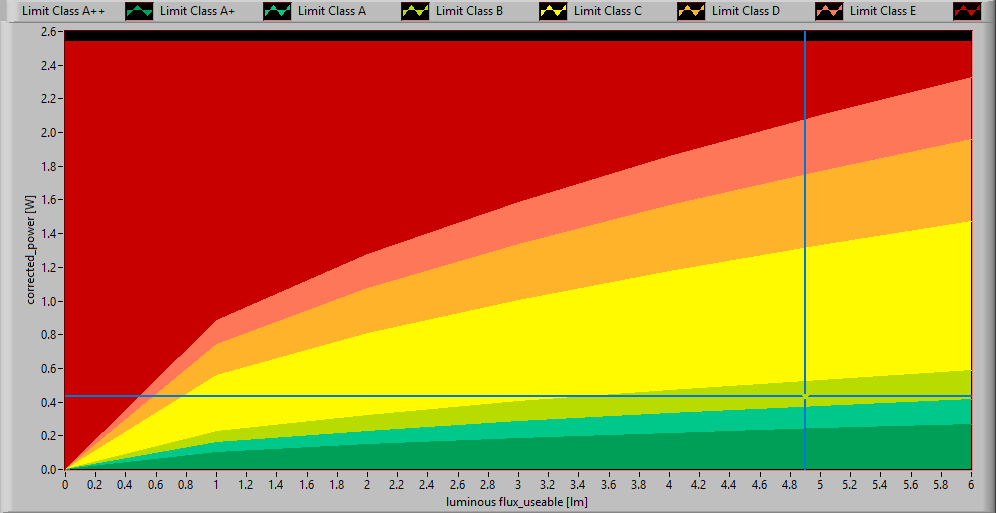 De prestatie van de lamp in het energie-performance vlak.