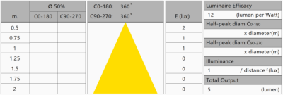 Bij het berekenen van de lichtsterktewaarden per hoek en deze uit te zetten in een grafiek, is de stralingshoek te bepalen: dit is berekend op 360 graden voor het C0-C180 vlak en 360 graden voor het C90-C270 vlak.