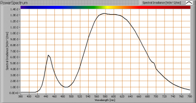 The spectral power distribution of this lamp.