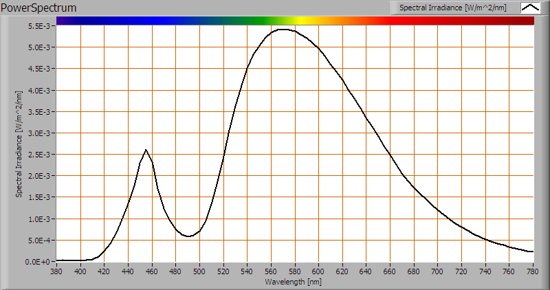 Note: the chromaticity difference is 0.013 indicates the distance to the Planckian Locus. Its value is higher than 0.0054, which means that the calculated CRI result is not meaningful.