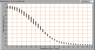 Herewith the plot of the averaged luminous intensity Iv as a function of the inclination angle with the light bulb.