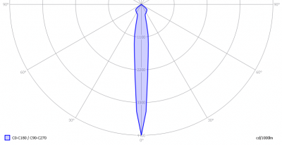 An interesting graph is the light diagram, indicating the intensity in the C0-C180 and the C90-C270 plane. This light diagram below comes from the program Qlumedit, that extracts these diagrams from an Eulumdat file.