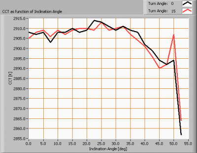 Color temperature as a function of inclination angle.