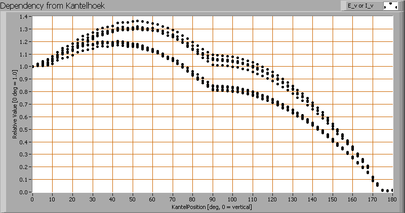 Herewith the plot of the averaged luminous intensity Iv as a function of the inclination angle with the light bulb.
