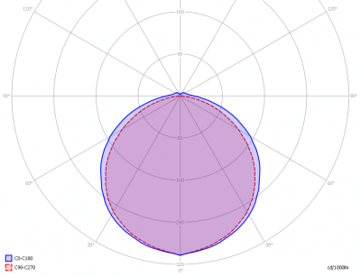 This radiation pattern is the average of the light output of the light diagram given earlier. Also, in this graph the luminous intensity is given in Cd.