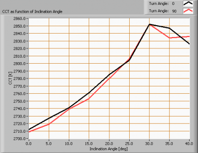 The color temperature is given for inclination angles up to 40 deg. Beyond that value the illuminance is so low (< 5 lux) that it has not been used for color determination of the light.