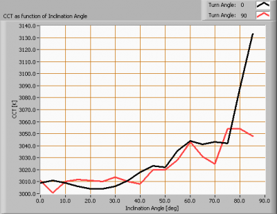 The color temperature is given for inclination angles up to 85 deg. Beyond that value the illuminance is so low (< 5 lux) that it has not been used for color determination of the light.