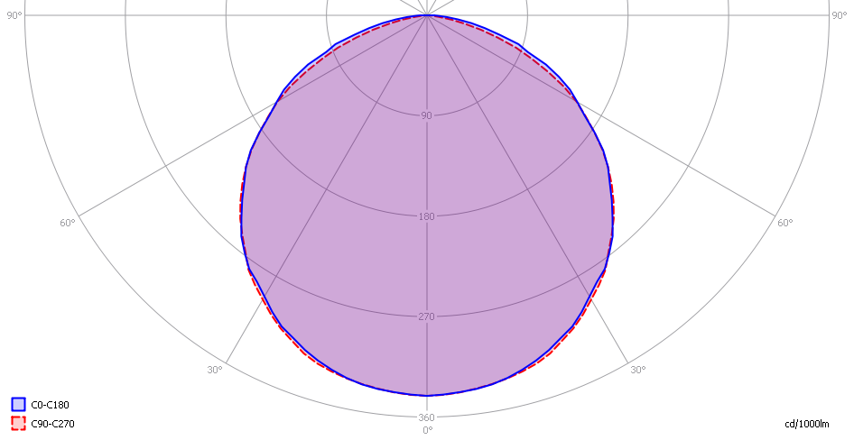This radiation pattern is the average of the light output of the light diagram given earlier. Also, in this graph the luminous intensity is given in Cd.