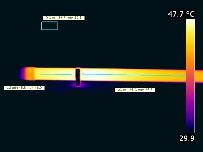 The temperature of the housing gets maximally about 23 degrees hotter than ambient temperature. Warm up effect: During the warmup time the illuminance doesn’t vary significantly (< 5 %). During the warmup time the power doesn’t vary significantly (< 5 %). Voltage dependency: There is no (significant) dependency of the illuminance when the power voltage varies between 200 – 250 V AC. At the end of the article an additional photo. |