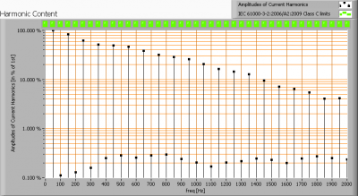 Harmonics in the current waveform and checked against IEC61000-3-2:2006 and A2:2009