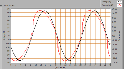 This current waveform has been checked on requirements posed by the norm IEC 61000-3-2:2006 (including up to A2:2009). See also the IEC 61000-3-2:2006 explanation on the OliNo website.
