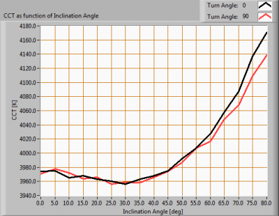 The color temperature is given for inclination angles up to 80 deg. Beyond that value the illuminance is so low (< 5 lux) that it has not been used for color determination of the light.