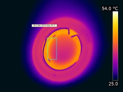 The temperature of the housing gets maximally about 31 degrees hotter than ambient temperature. Warm up effect: During the warmup time the illuminance varies during 15 minutes and decreases with 7 %. Voltage dependency: There is no (significant) dependency of the illuminance when the power voltage varies between 200 – 250 V AC. At the end of the article an additional photo. |