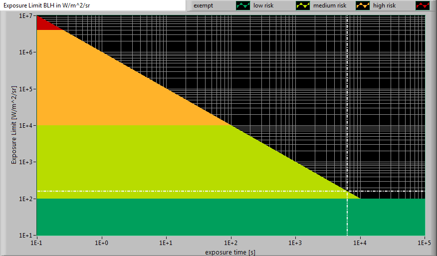 | alphaAVG [rad] | 0.033 | Average (apparent) source angle. If average >= 0.011 rad then the exposure limit is computed with radiance Lb. Otherwise with irradiance Eb. |