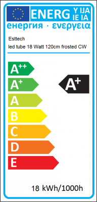 Esttech presents an LED tube. The measurements from OliNo show that the lamp emits a cold white light with a color temperature of 5659 K. The lamp consumes 18.0 W and has a luminous flux of 1783 lm. This results in an efficacy of 99 lm/W. The lamps energy category label is A+.