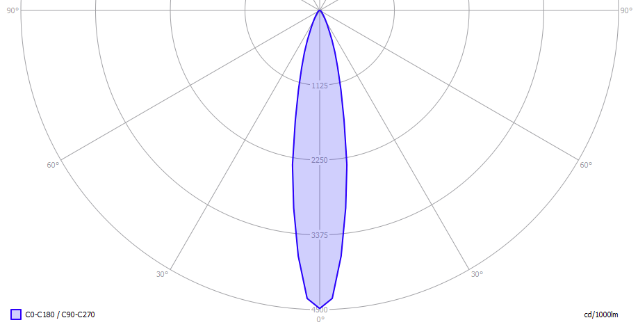 The light diagram indicates the beam in the C0-C180 plane and in the plane perpendicular to that, the C90-C270 plane. These beams are equal as the lamp has symmetry over its first axis (the vertical axis).