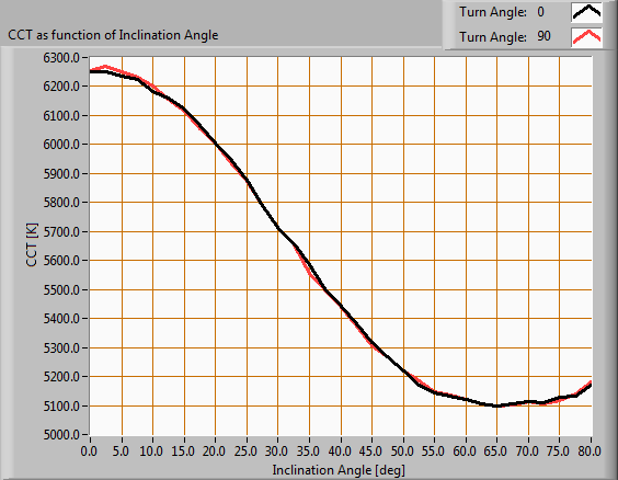 Color temperature as a function of inclination angle.