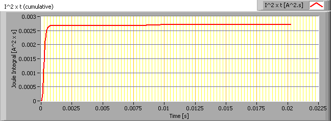| I^2 x t after 10 ms at 0 deg voltage start angle | 4.330E-4 A | This is the I^2 t value when a zero crossing detector is used to start the voltage from 0 degrees. |
