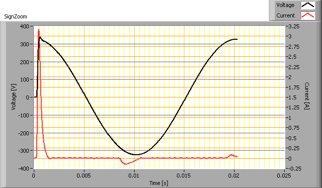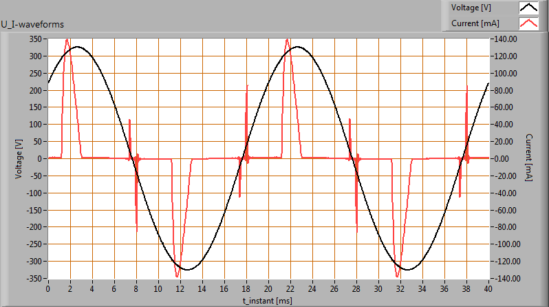 | Minimal inrush current | 0.365 A | This current has been found at a voltage start angle of 170 degrees. |