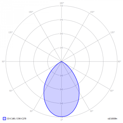 The light diagram indicates the beam in the C0-C180 plane and in the plane perpendicular to that, the C90-C270 plane. These beams are equal as the lamp has symmetry over its first axis (the vertical axis).
