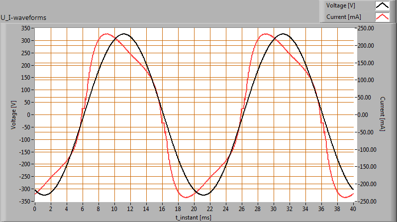 This current waveform has been checked on requirements posed by the norm IEC 61000-3-2:2006 (including up to A2:2009).