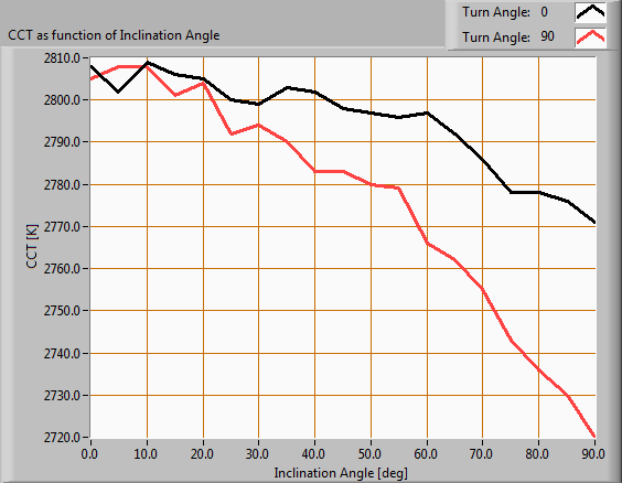 Color temperature as a function of inclination angle.