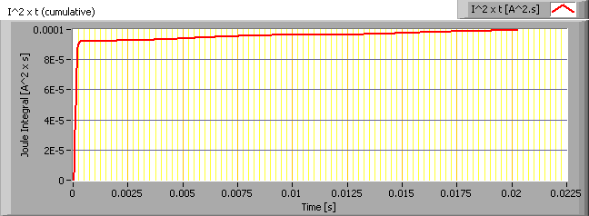 I^2 x t after 10 ms at 0 deg voltage start angle 6.000E-6 A This is the I^2 t value when a zero crossing detector is used to start the voltage from 0 degrees.