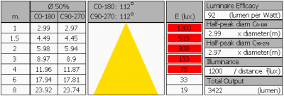 This light diagram below comes from the program Qlumedit, that extracts these diagrams from an Eulumdat file.