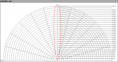 Aus den mittleren Lichtstärkewerten pro Winkel lässt sich grafisch der Strahlungswinkel der Lampe feststellen: Bei dieser Lampe 15 Grad im C0-C180 Schnitt und 15 Grad im C90-C270 Schnitt.