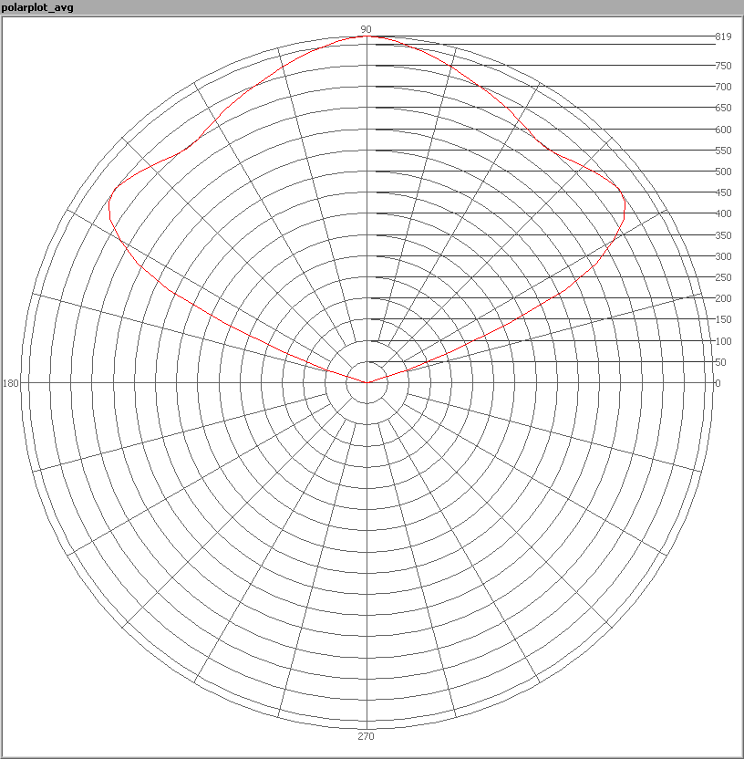 Hier der Plot der gemittelten Lichtstärke I_v abhängig vom Winkel der Messung gegenüber der Lampe: Alle Lichtstärkemessungen für 1 Kippwinkel für alle möglichen Drehwinkel ergeben den Mittelwert für diesen Kippwinkel. Aus dieser Grafik kann die Helligkeit in Candela (Cd) direkt abgelesen werden.