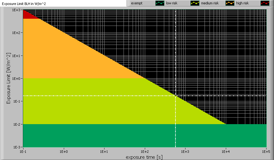 | alphaAVG [rad] | 0.007 | Average (apparent) source angle. If average >= 0.011 rad then the exposure limit is computed with radiance Lb. Otherwise with irradiance Eb. |