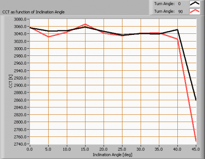 Color temperature as a function of inclination angle.