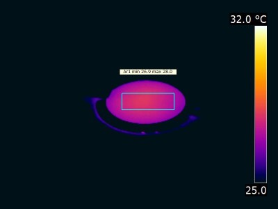 General remarks The ambient temperature during the whole set of illuminance measurements was 22.0 – 24.2 deg C.The temperature of the lamp gets maximally about 8 degrees hotter than ambient temperature.Warm up effect: During the warmup time the illuminance varies during 20 minutes and decreases with 6 %.