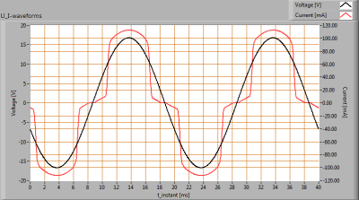 This current waveform has been checked on requirements posed by the norm IEC 61000-3-2:2006 (including up to A2:2009).