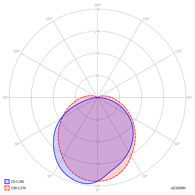 This light diagram below comes from the program Qlumedit, that extracts these diagrams from an Eulumdat file.