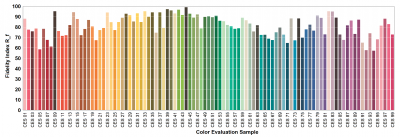 TM-30-15-values for 99 samples for the light of this light bulb. The closer the value for a testcolor comes to 100, the more its rendition resembles that of a reference lightsource.