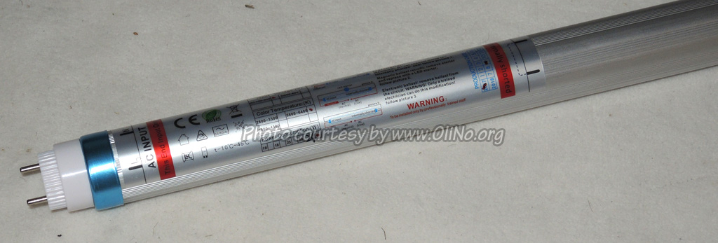 LedsGoEco. The measurements from OliNo show that the lamp emits a cold white light with a color temperature of 6095 K. The lamp consumes 24.6 W and has a luminous flux of 3743 lm. This results in an efficacy of 152 lm/W. The lamps energy category label is A++.