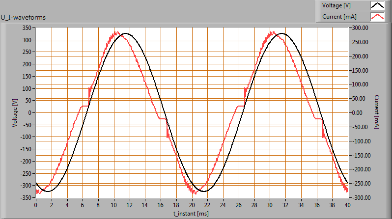 This current waveform has been checked on requirements posed by the norm IEC 61000-3-2:2006 (including up to A2:2009).